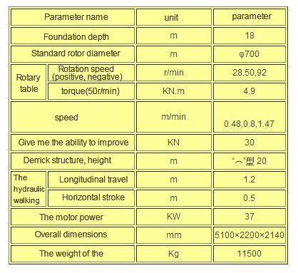 2. Hydraulic walking is adopted to move longitudinally and horizontally. It is convenient to locate the hole and has strong maneuverability, so it is suitable for the requirement of construction technology.
