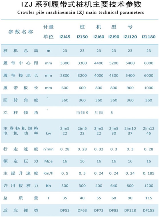 IZJ系列履帶式樁機(jī)采取電動(dòng)履帶式設(shè)計(jì),樁機(jī)前后有4個(gè)液壓支腿,具有行走穩(wěn)定快捷、對(duì)樁準(zhǔn)確可靠、維修操作簡(jiǎn)單等特點(diǎn)?蓪(shí)現(xiàn)導(dǎo)桿式柴油錘、筒式柴油錘、振動(dòng)錘、液壓錘、長(zhǎng)螺旋鉆機(jī)等多種工作設(shè)備、多種工法的施工。